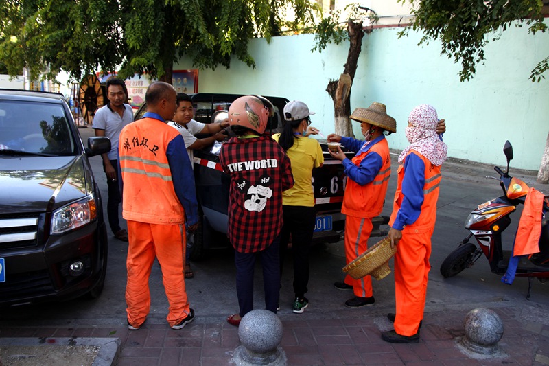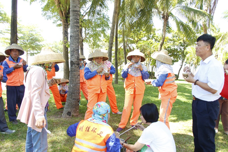 在鳳凰路一中路段、海虹廣場等地,正在清掃保潔作業(yè)的員工們頂著烈日,堅守一線,為城市的干凈整潔不停歇地忙碌著。工會主席高斐斐表示,在這么炎熱的天氣下,員工們依舊堅守在城市的大街小巷揮灑著汗水,十分辛苦。她叮囑員工們在保證工作質量的同時,要科學調整作息時間,合理安排勞動生產(chǎn),確保在高溫天氣下作業(yè)安全。勉勵大家繼續(xù)發(fā)揚明佳精神,為創(chuàng)造更加整潔、舒適、優(yōu)美的城市人居環(huán)境和“創(chuàng)文鞏衛(wèi)”工作作出更大貢獻。
