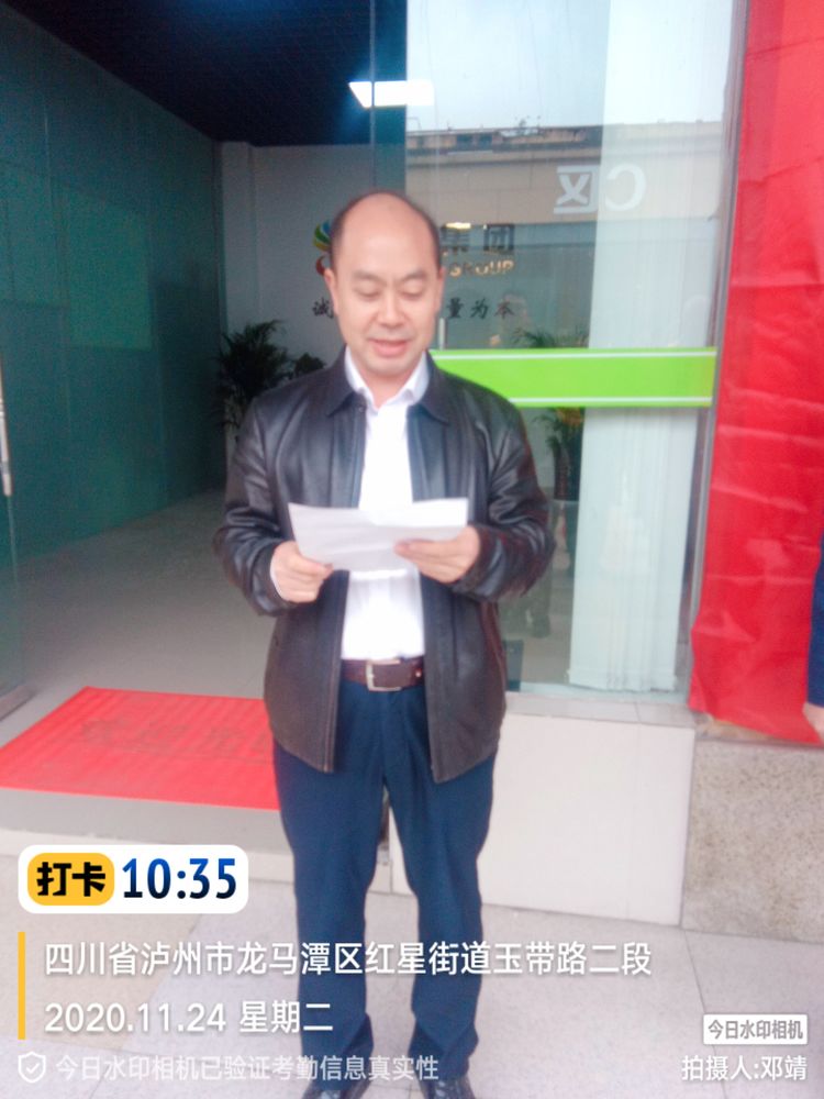 揭牌儀式前,項(xiàng)目經(jīng)理張明強(qiáng)致辭,回顧了從7月份開始接管后的重大事件,感謝所有員工的辛勞付出,他表示在今后的工作中,我們要更加努力,認(rèn)真工作,服從區(qū)委區(qū)政府、業(yè)主單位各級(jí)領(lǐng)導(dǎo)的調(diào)配,熟練掌握操作技巧,提高安全意識(shí),把我們龍馬潭區(qū)的環(huán)衛(wèi)管理工作做得更好,用認(rèn)真工作的態(tài)度,用我們的實(shí)際行動(dòng),為營(yíng)造優(yōu)美、整潔、和諧的龍馬潭區(qū)城區(qū)環(huán)境而努力,提升城市品位。為公司在四川的發(fā)展奠定堅(jiān)實(shí)的基礎(chǔ)。