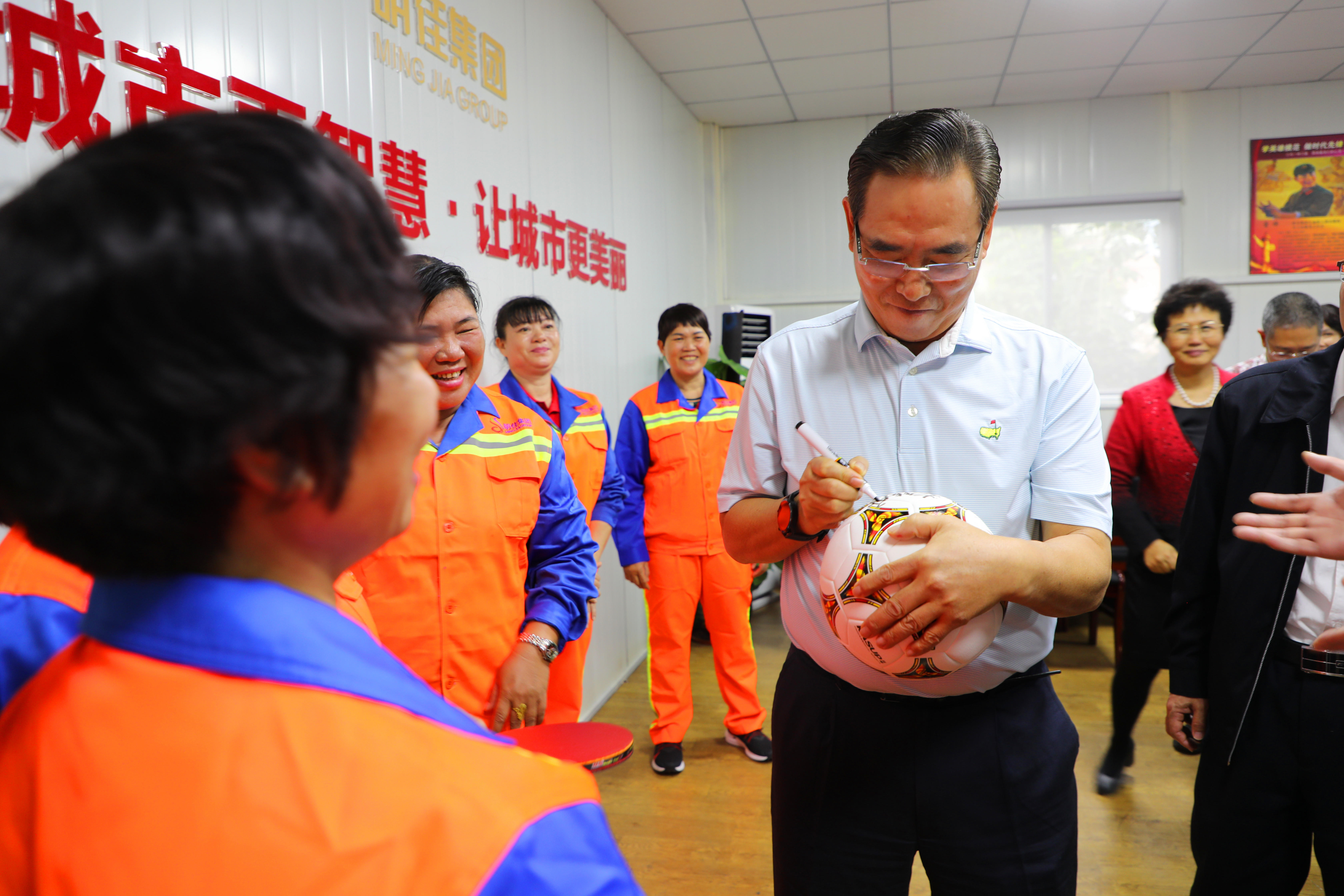 他肯定了明佳集團(tuán)工會(huì)取得的成績(jī),并親切慰問(wèn)了現(xiàn)場(chǎng)的環(huán)衛(wèi)工人,與他們一一握手,并合影留念。