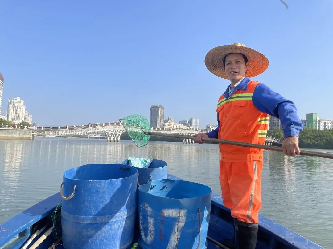 曾靈是三亞明佳園林環(huán)衛(wèi)集團(tuán)天涯區(qū)環(huán)衛(wèi)二隊(duì)的一名員工,和我們平常在街邊看到清理地面垃圾的環(huán)衛(wèi)工人有所不同,他的工作是在船上完成的,每天需要站在作業(yè)船上,手持一把長柄濾網(wǎng),將漂浮在三亞河上的落葉、紙屑等垃圾打撈起來,放入專門的垃圾桶里再運(yùn)輸走。記者來到曾靈的工作地點(diǎn):三亞河,近距離了解他春節(jié)期間的工作是什么樣的……