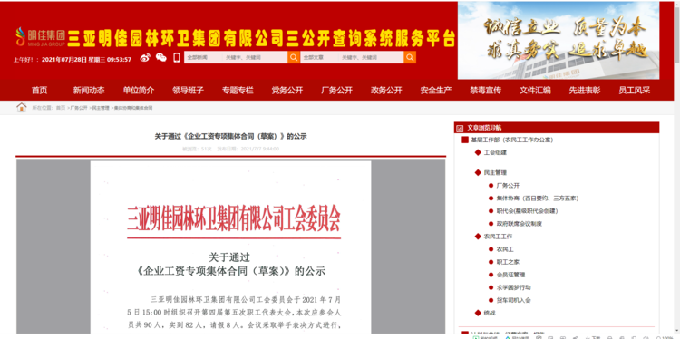 2021年8月2日,吉陽區(qū)人社局審查通過我公司《企業(yè)工資專項(xiàng)集體合同》。8月4日報三亞市總工會基層工作部備案。至此,三亞明佳園林環(huán)衛(wèi)集團(tuán)有限公司2021年度企業(yè)工資集體協(xié)商工作圓滿結(jié)束。